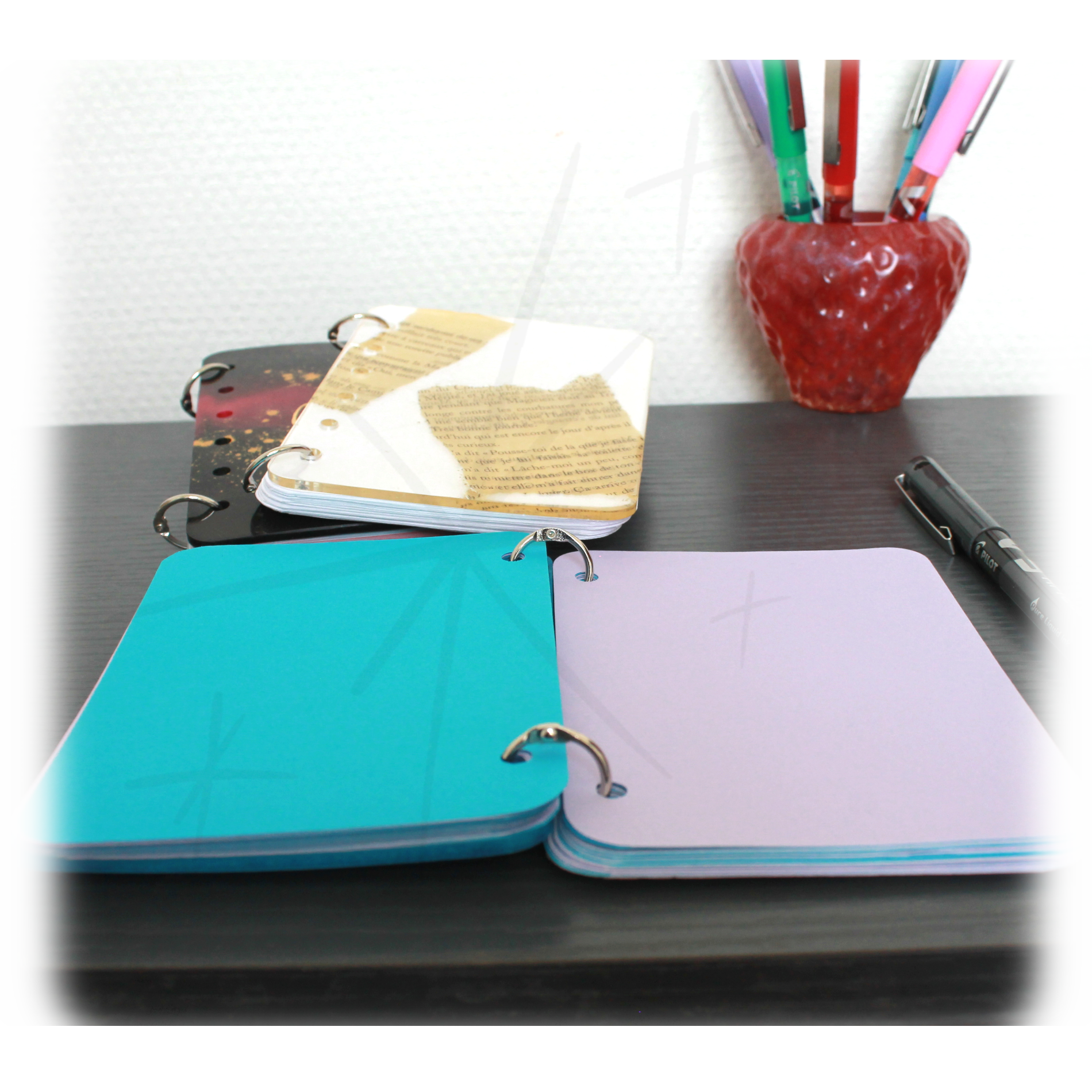 Un carnet pas comme les autres, avec une couverture artisanale en résine époxy, brillante et colorée.