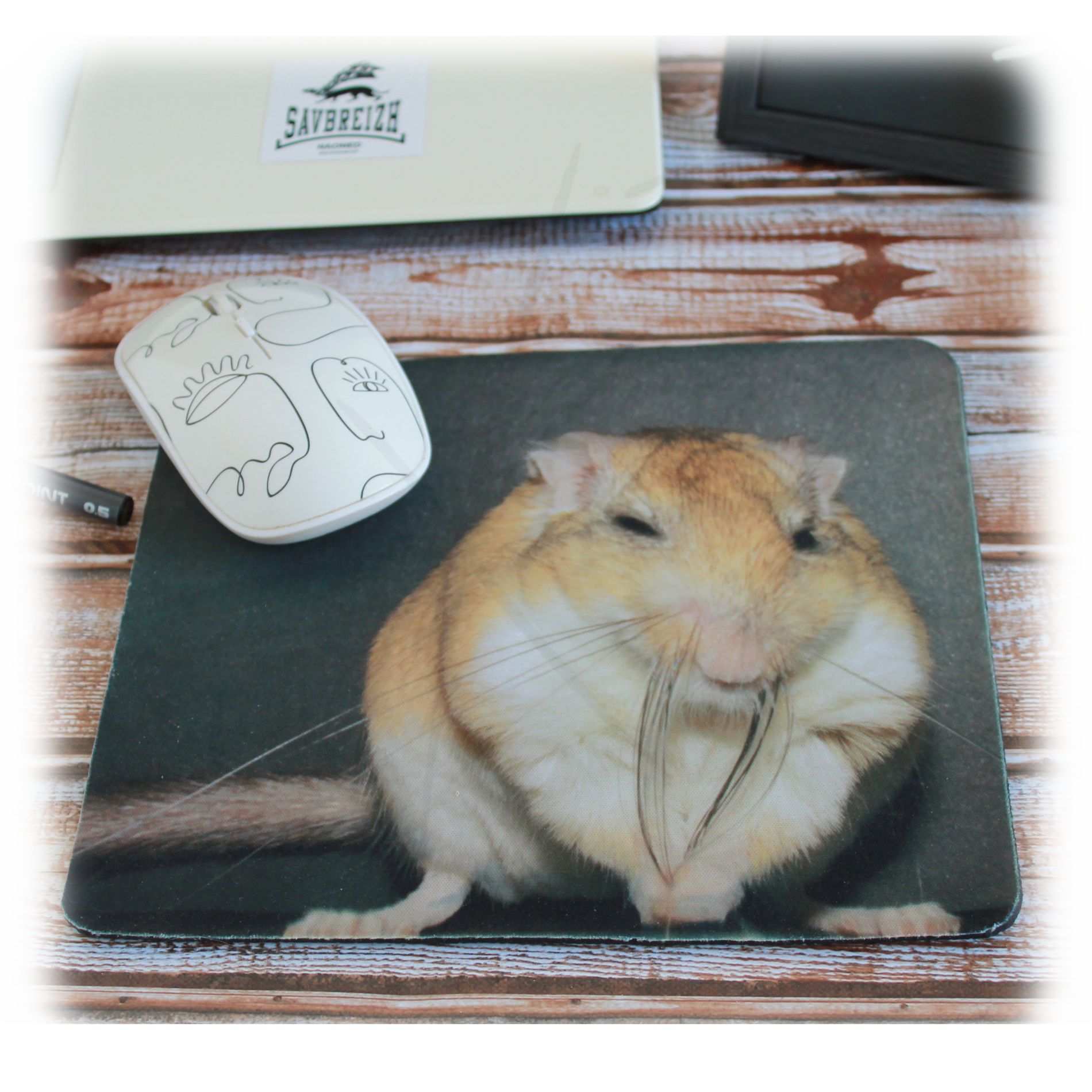 Plus pratique (et plus joli) qu’une page blanche, ce Tapis de souris personnalisable sera parfait à côté de votre ordinateur.